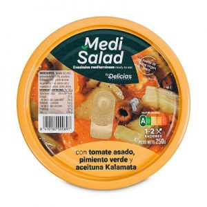 Referencia 149004Ensalada tomate asado, pimiento y aceituna kalamata 250 gr. MediSalad