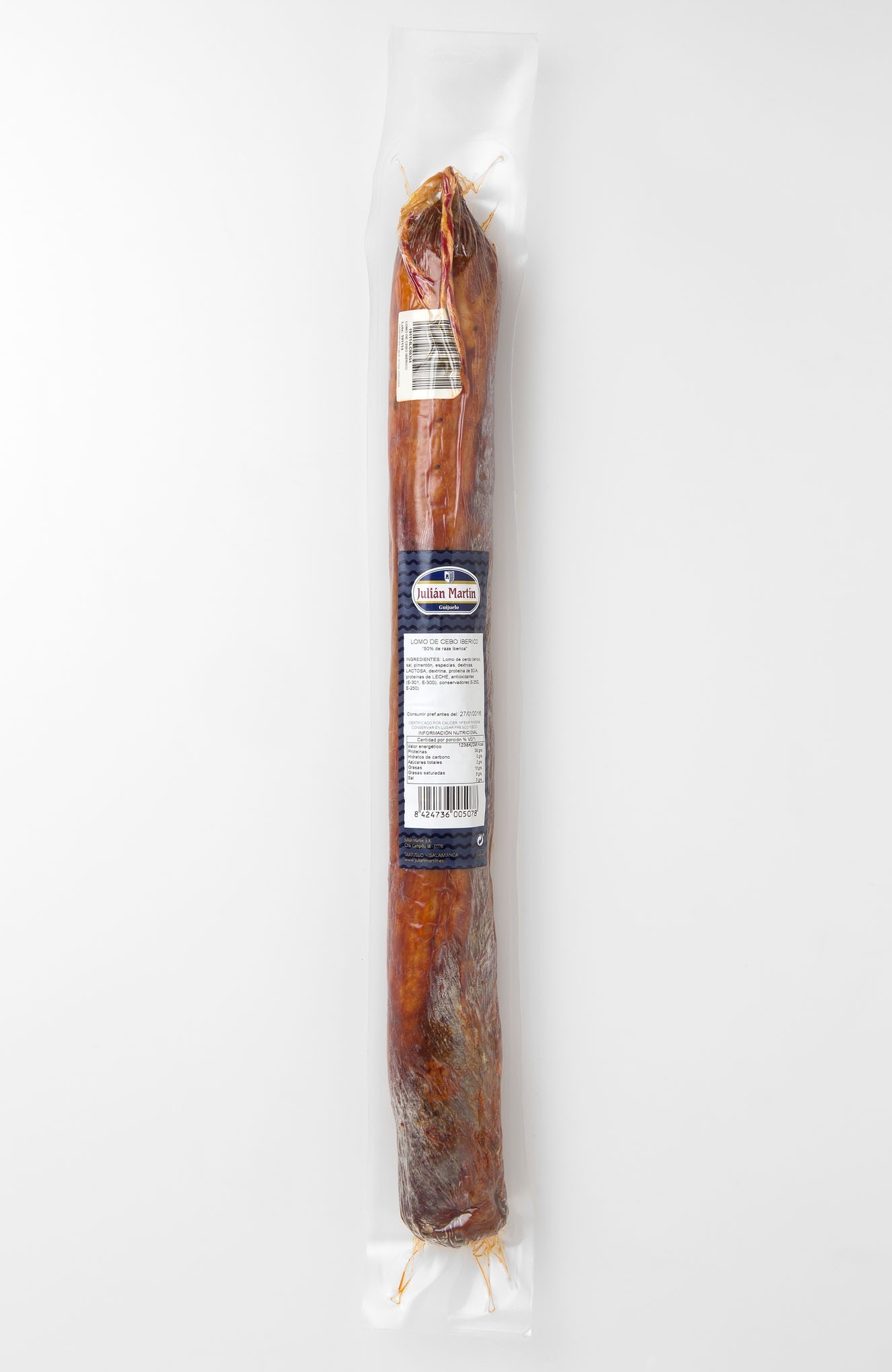 Elaboración: magros escogidos provenientes de cerdo ibéricos alimentados con piensos naturales.