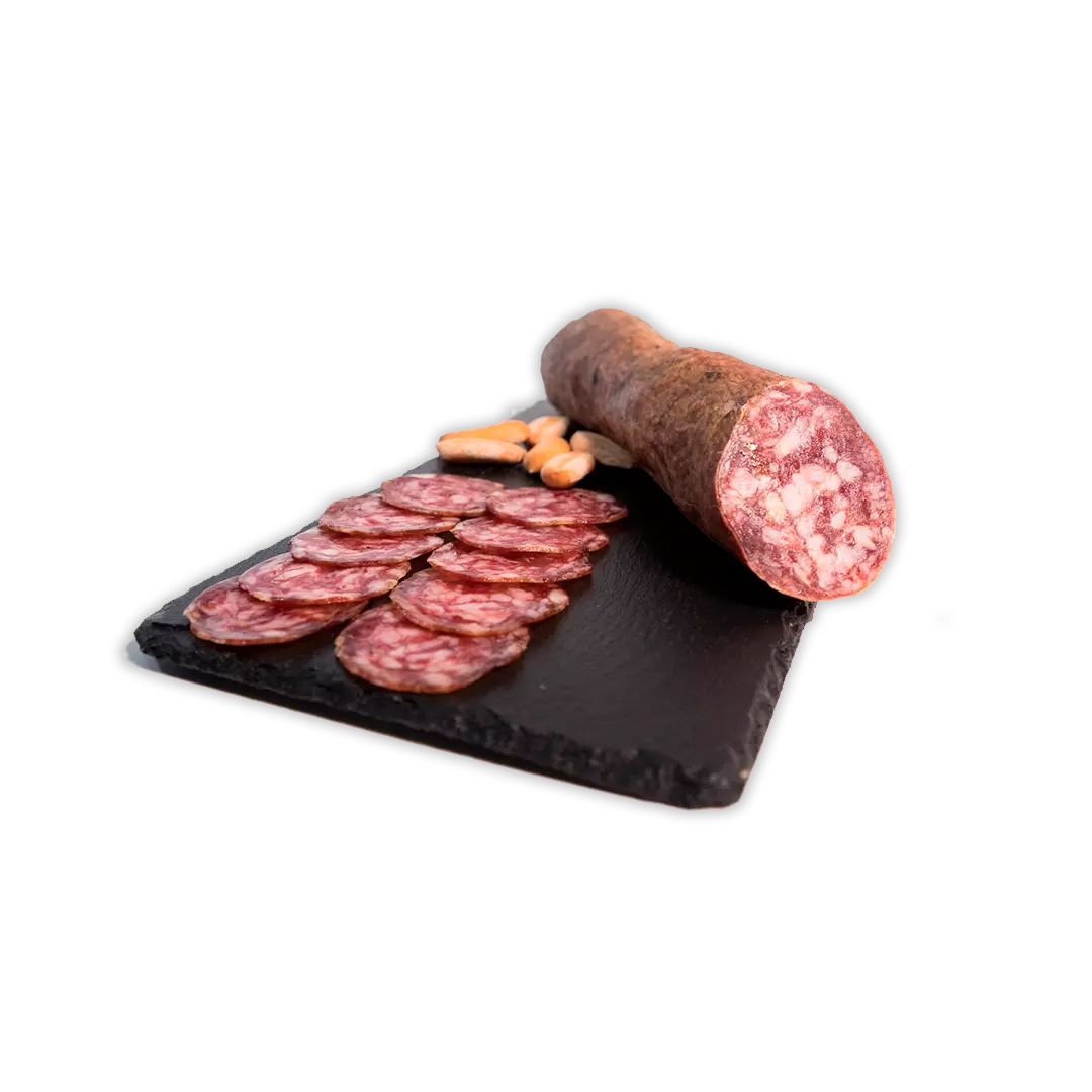 Ingredientes: Carne y grasa de cerdo ibérico, sal, lactosa, especias, dextrosa, dextrina, leche en polvo, proteína de soja, proteínas